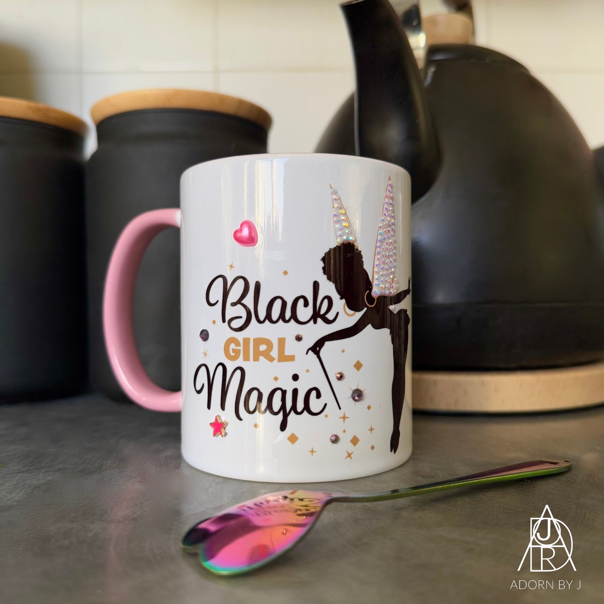 All mugs are handmade, so no two will be exactly alike. The placement of rhinestones will be different, and the colour or style of flowers and accessories (if included) may also differ.