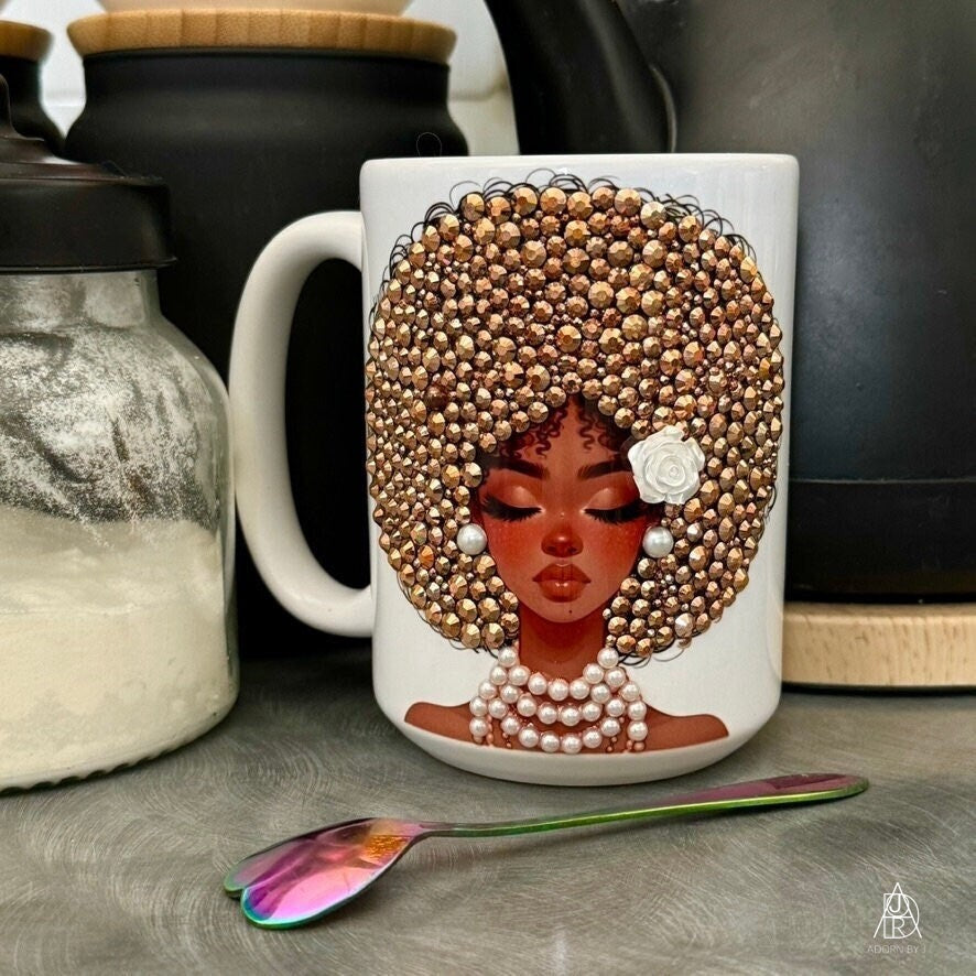 *All mugs are handmade, so no two will be exactly alike. The placement of rhinestones will be different, and the colour or style of flowers and accessories (if included) may also differ from mug to mug.