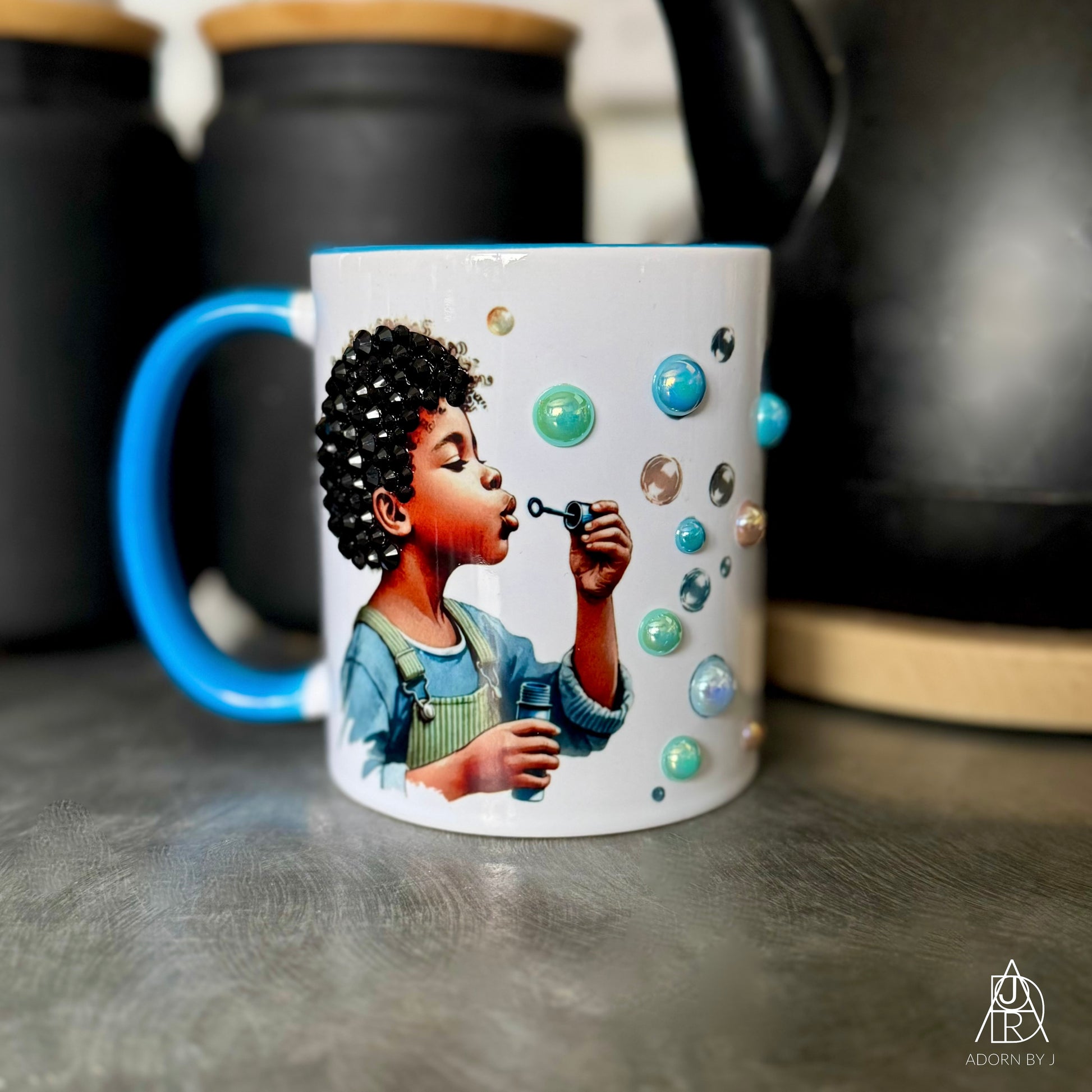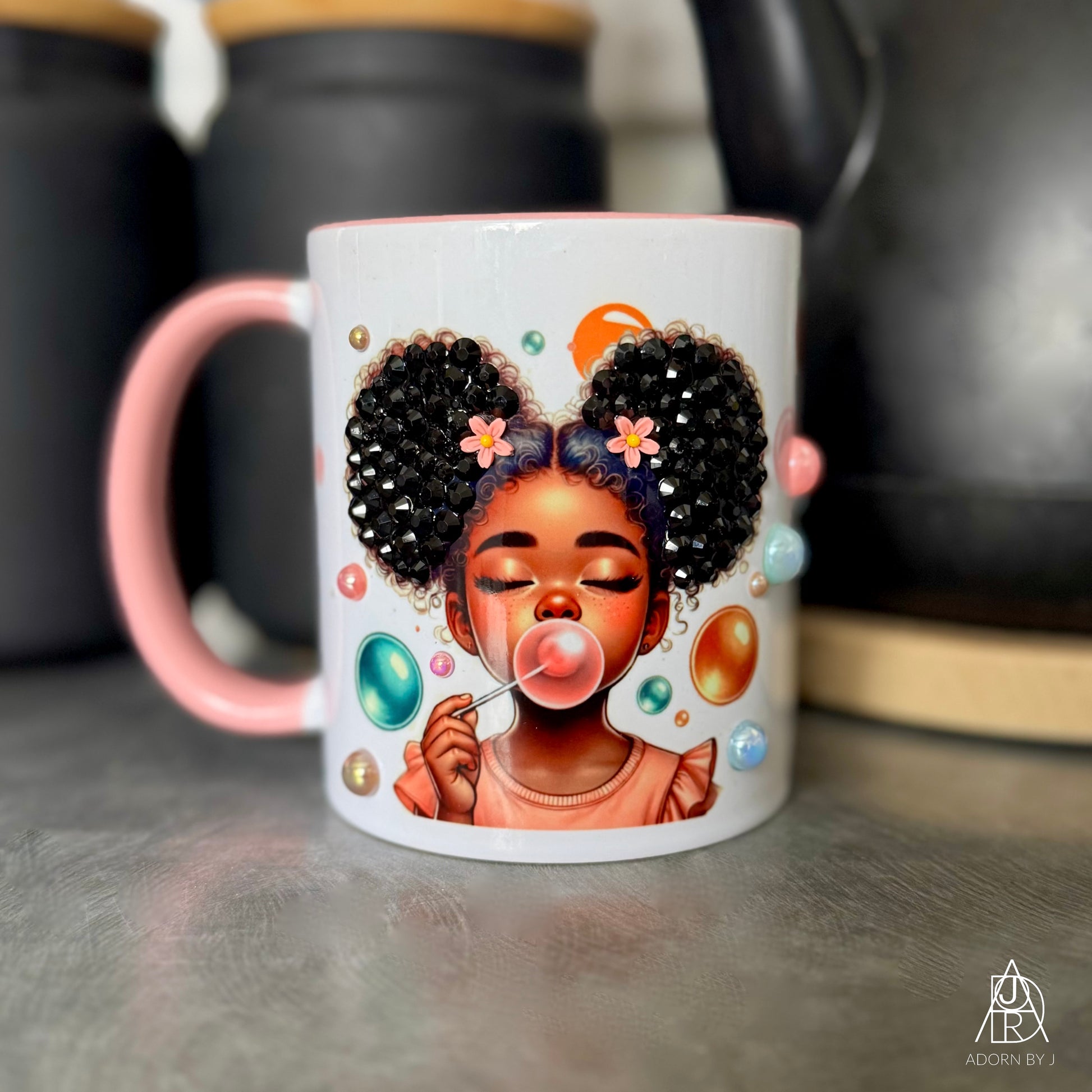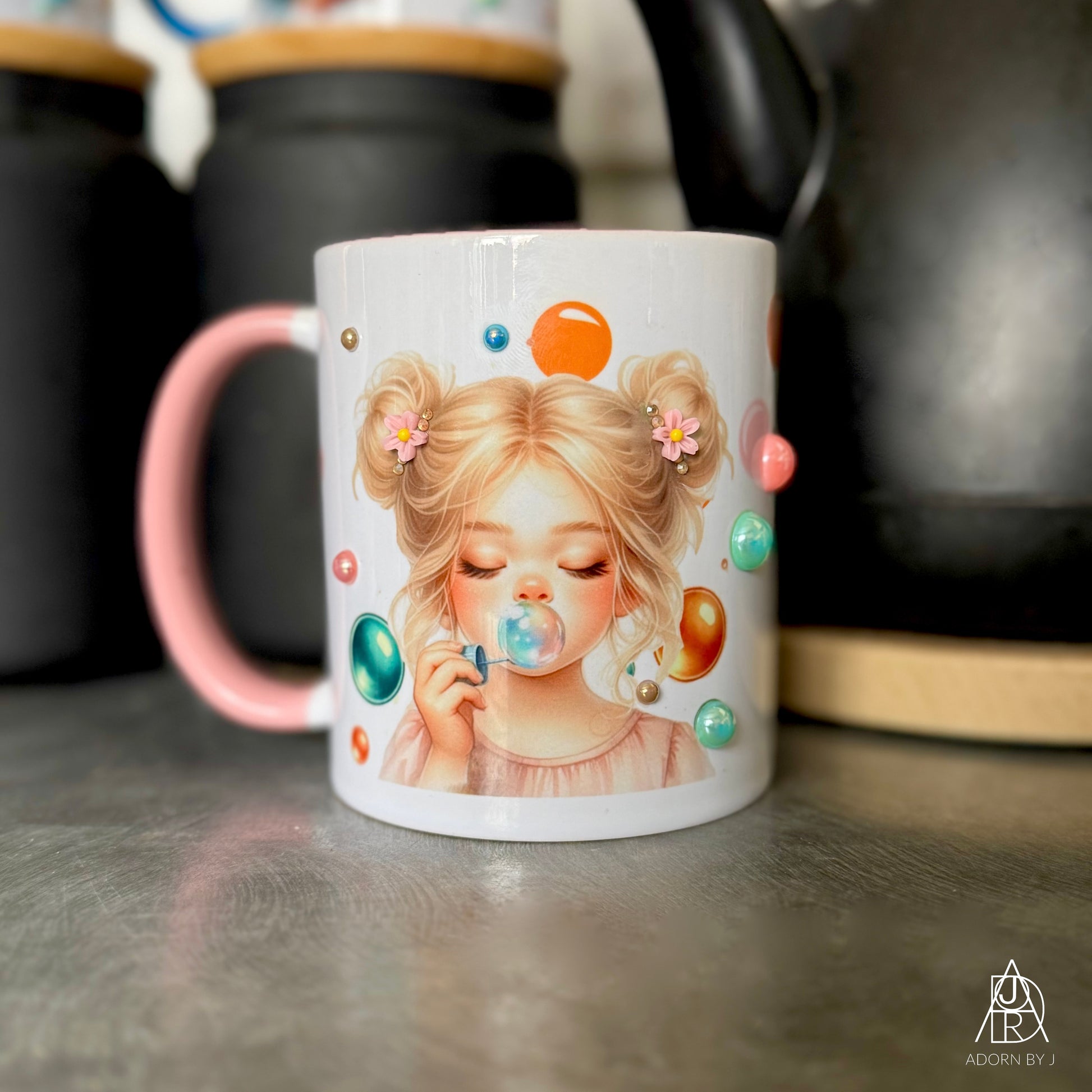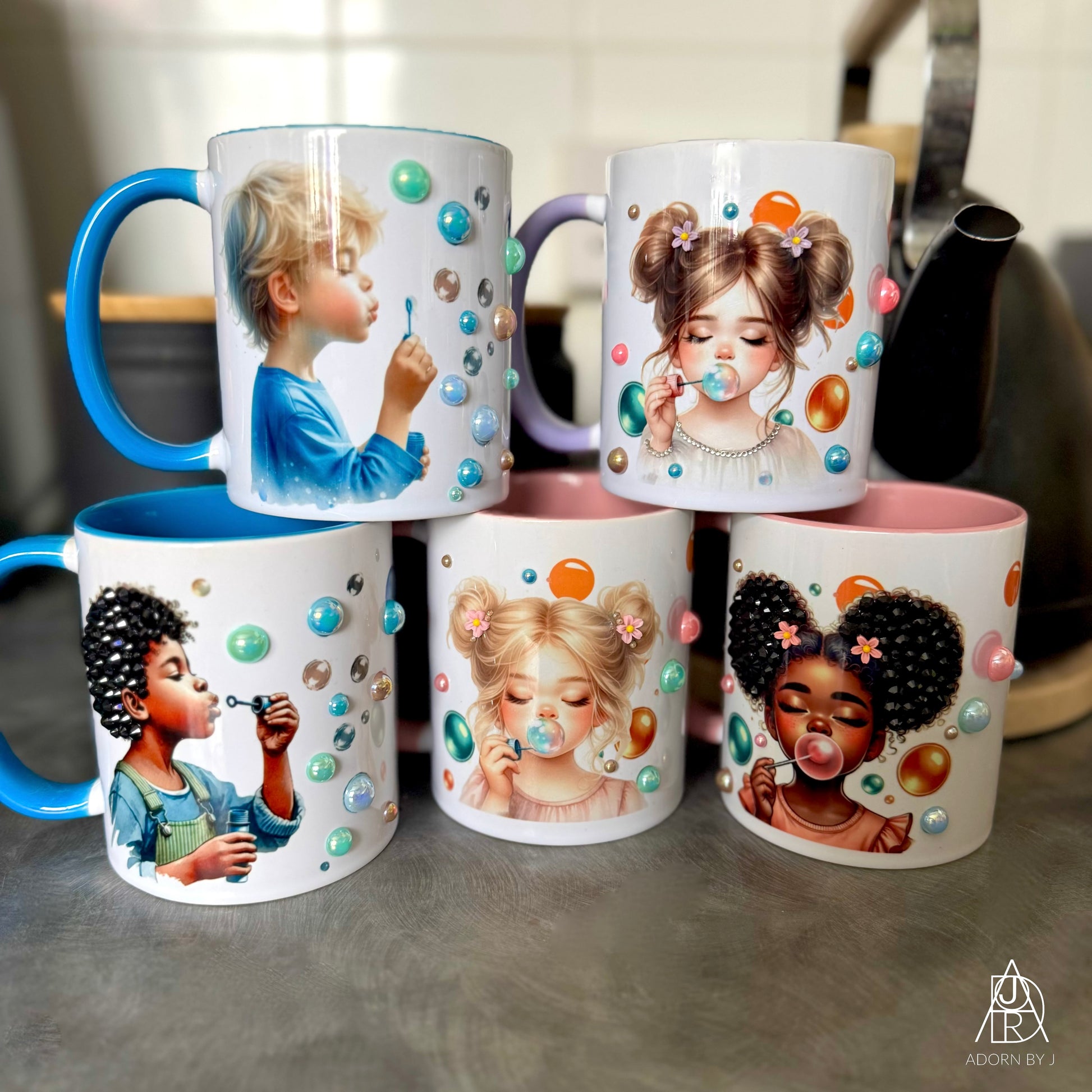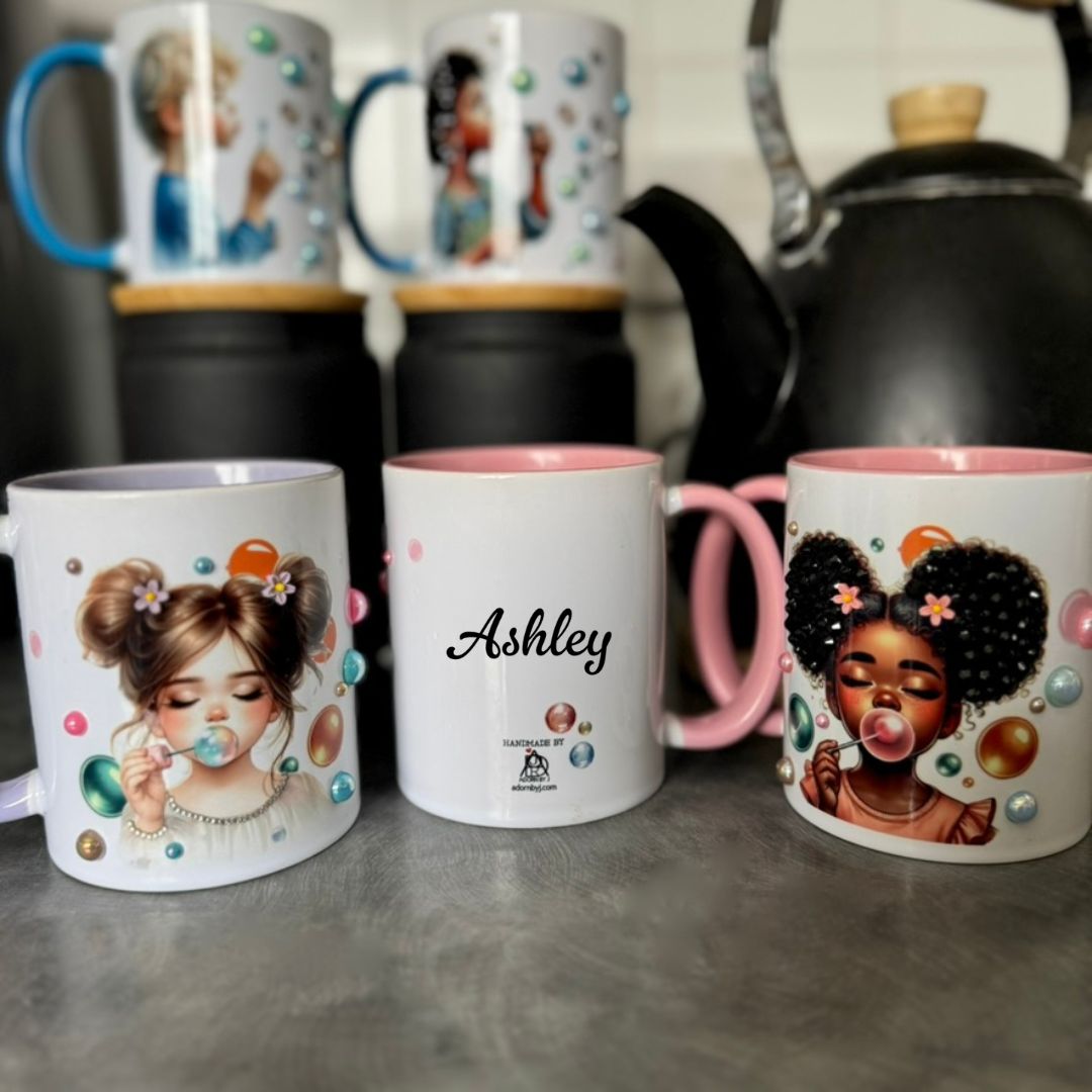 All mugs are handmade, so no two will be exactly alike. The placement of rhinestones will be different, and the colour or style of flowers and accessories (if included) may also differ.