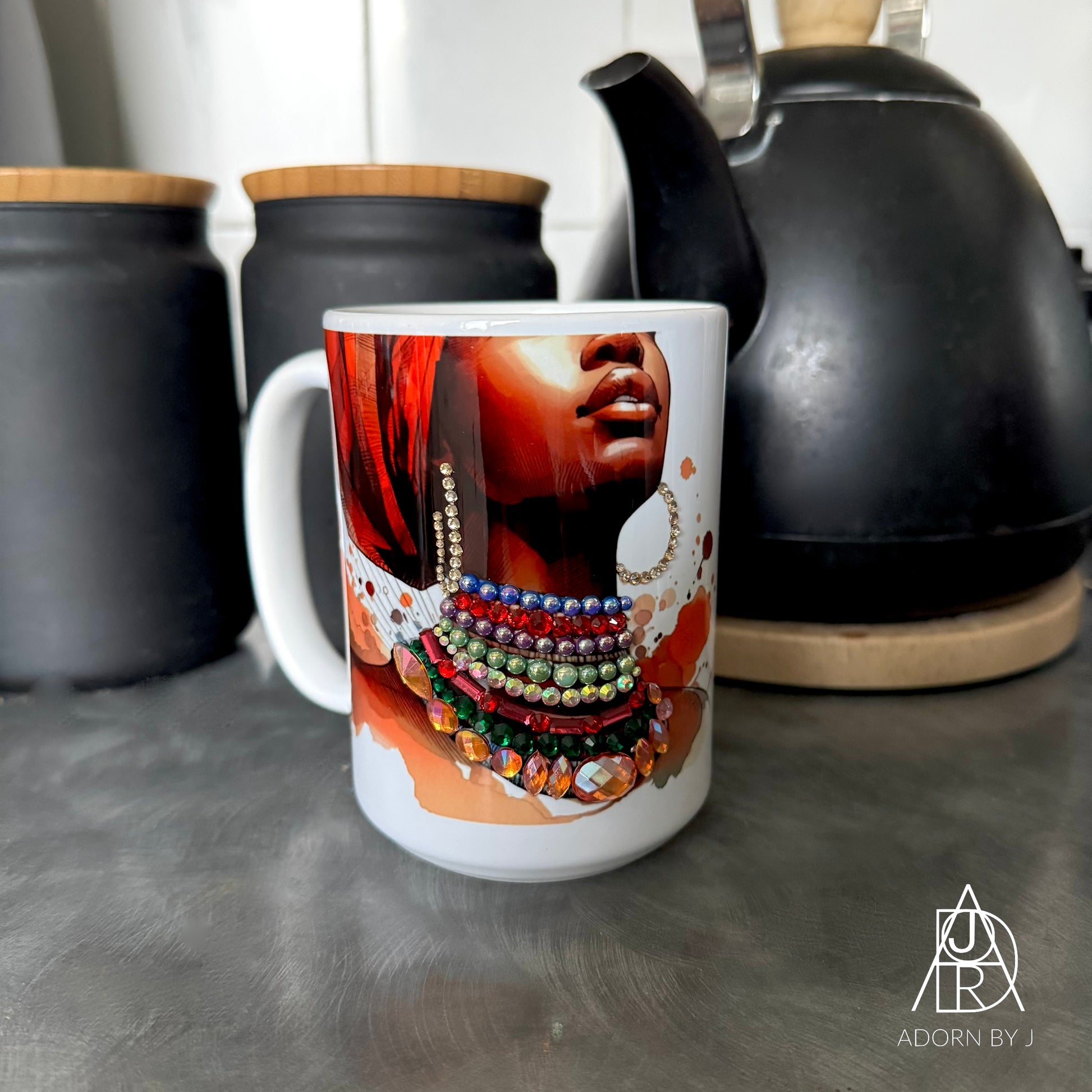 *All mugs are handmade, so no two will be exactly alike. The placement of rhinestones will be different, and the colour or style of flowers and accessories (if included) may also differ from mug to mug.
