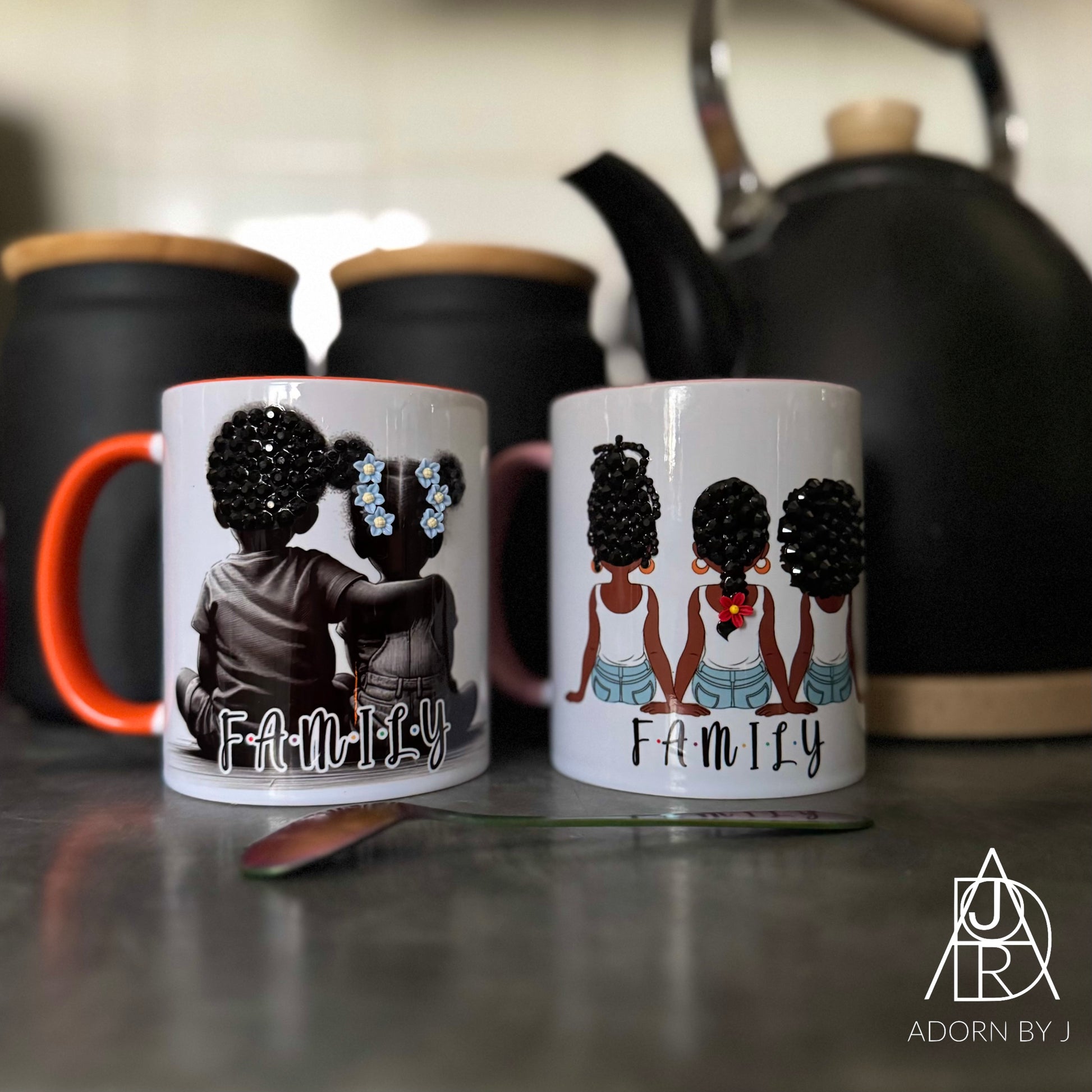 *All mugs are handmade, so no two will be exactly alike. The placement of rhinestones will be different, and the colour or style of flowers and accessories (if included) may also differ from mug to mug.