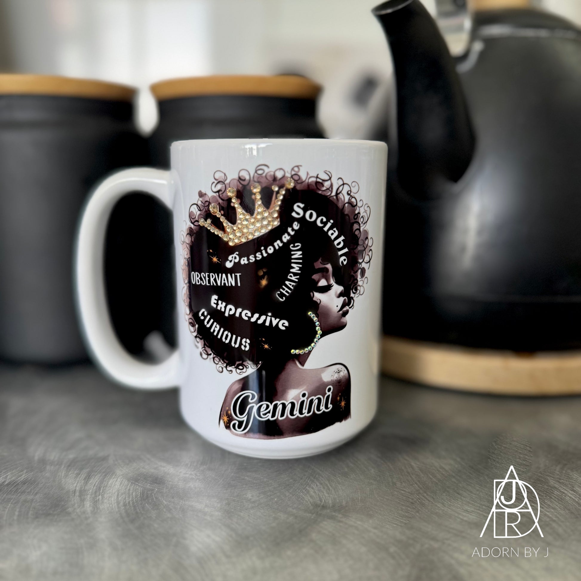 *All mugs are handmade, so no two will be exactly alike. The placement of rhinestones will be different, and the colour or style of flowers and accessories (if included) may also differ from mug to mug.