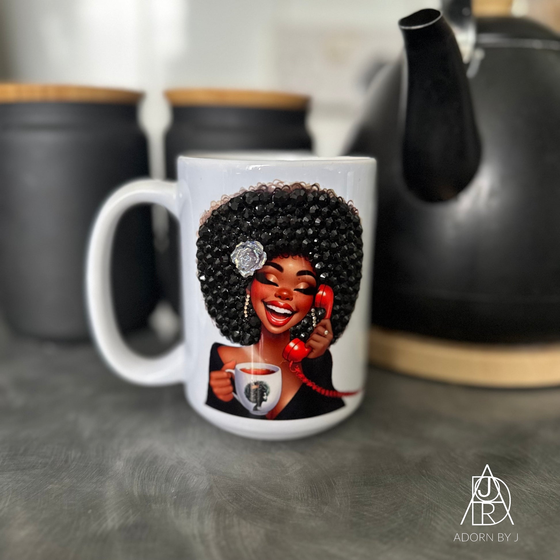 *All mugs are handmade, so no two will be exactly alike. The placement of rhinestones will be different, and the colour or style of flowers and accessories (if included) may also differ from mug to mug.