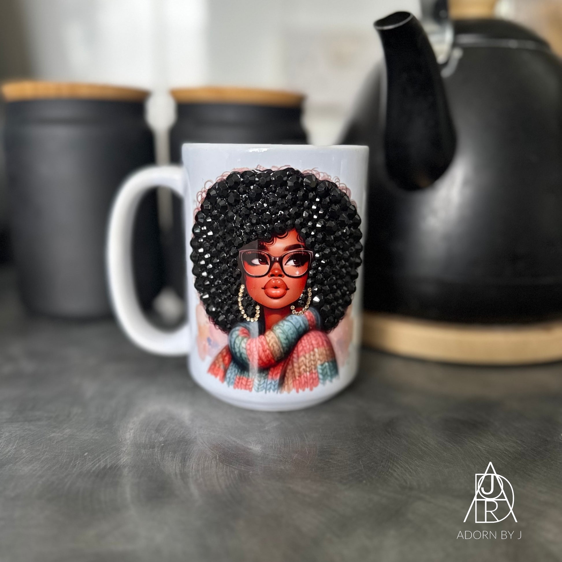 *All mugs are handmade, so no two will be exactly alike. The placement of rhinestones will be different, and the colour or style of flowers and accessories (if included) may also differ from mug to mug.