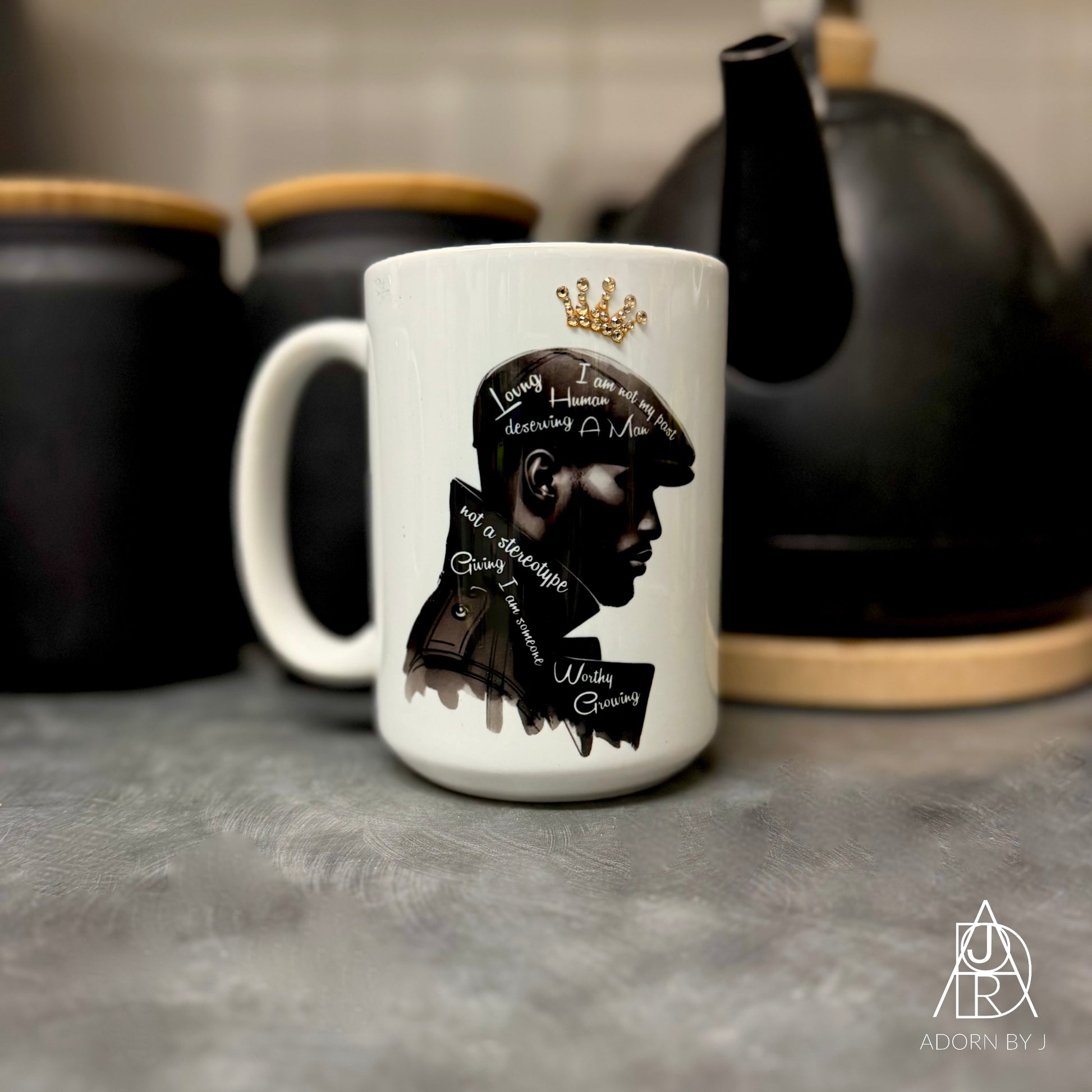 *All mugs are handmade, so no two will be exactly alike. The placement of rhinestones will be different, and the colour or style of flowers and accessories (if included) may also differ from mug to mug.