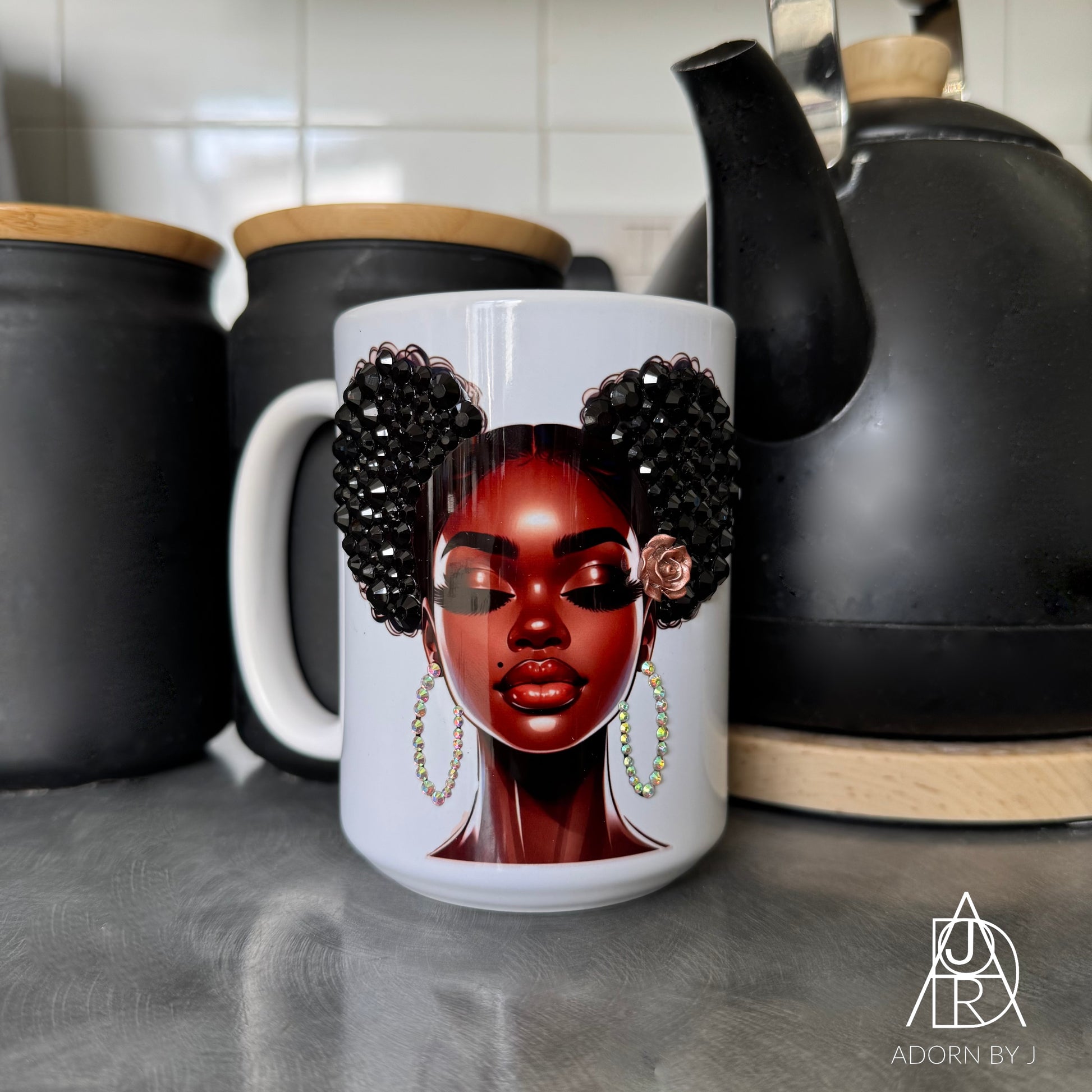 *All mugs are handmade, so no two will be exactly alike. The placement of rhinestones will be different, and the colour or style of flowers and accessories (if included) may also differ from mug to mug.