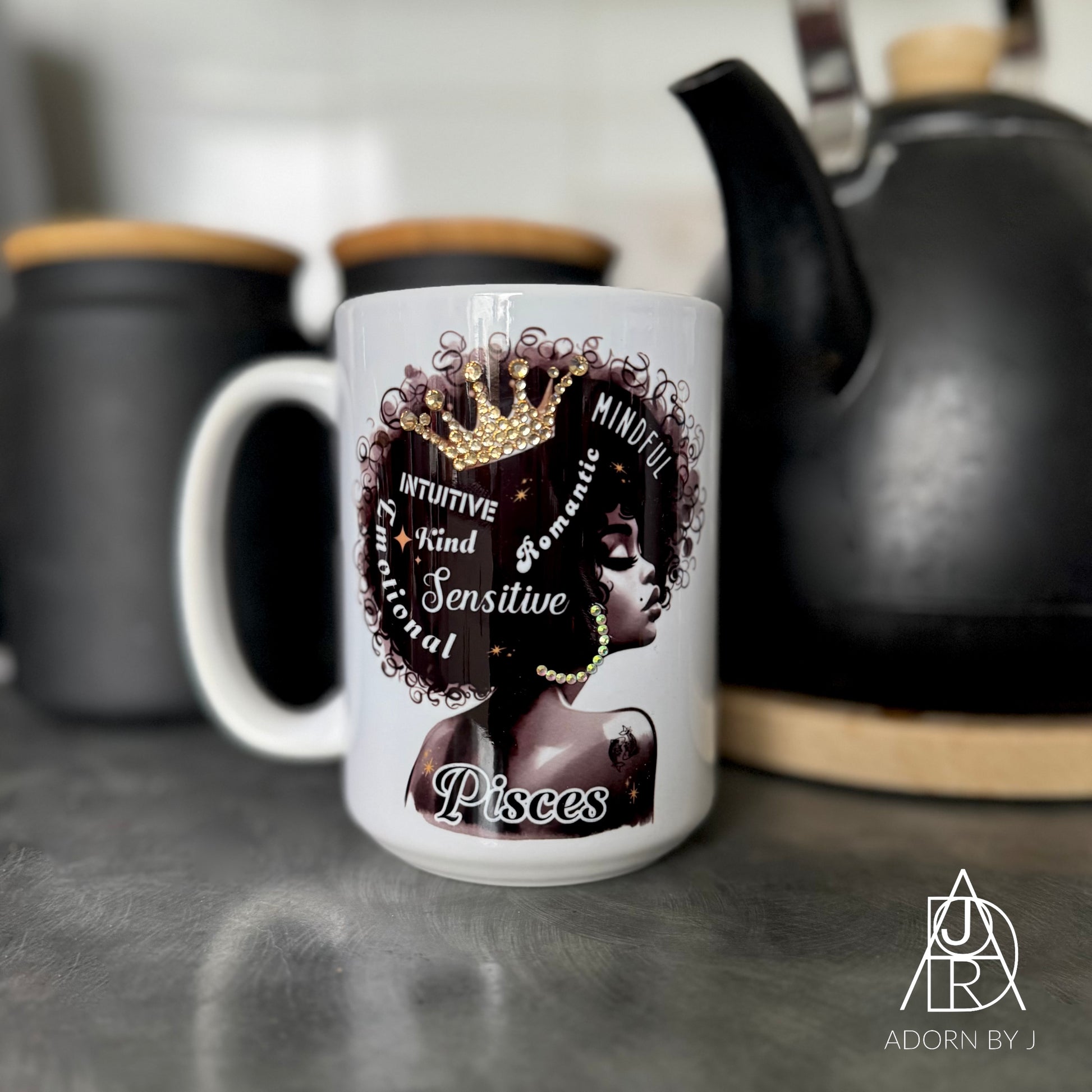 *All mugs are handmade, so no two will be exactly alike. The placement of rhinestones will be different, and the colour or style of flowers and accessories (if included) may also differ from mug to mug.