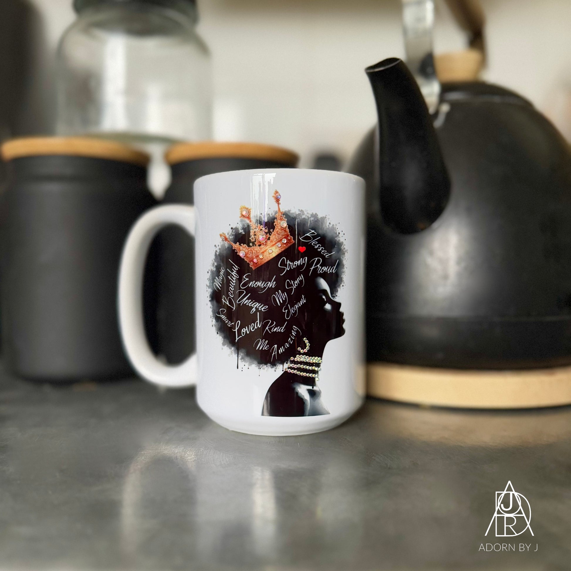 *All mugs are handmade, so no two will be exactly alike. The placement of rhinestones will be different, and the colour or style of flowers and accessories (if included) may also differ from mug to mug.