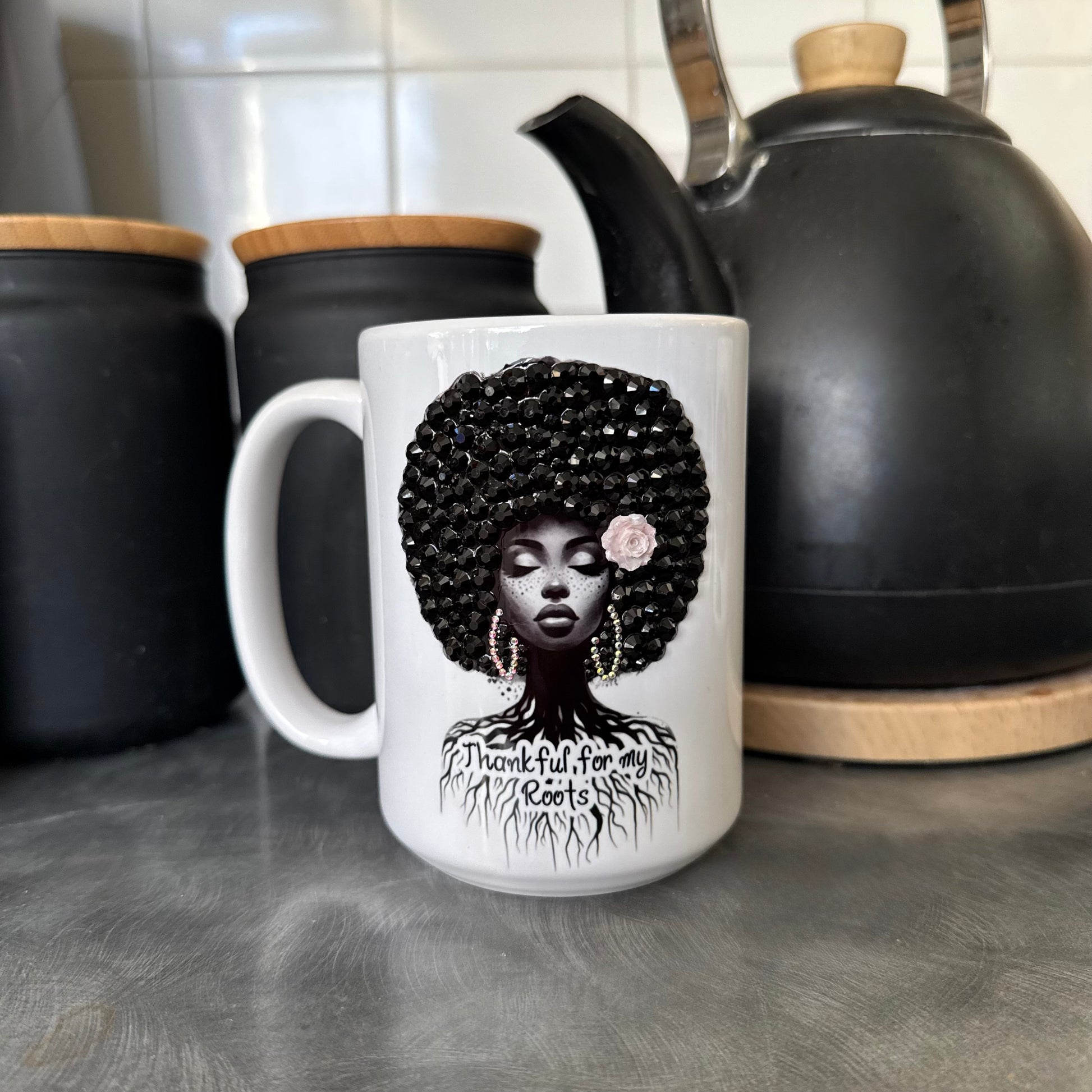 *All mugs are handmade, so no two will be exactly alike. The placement of rhinestones will be different, and the colour or style of flowers and accessories (if included) may also differ from mug to mug.