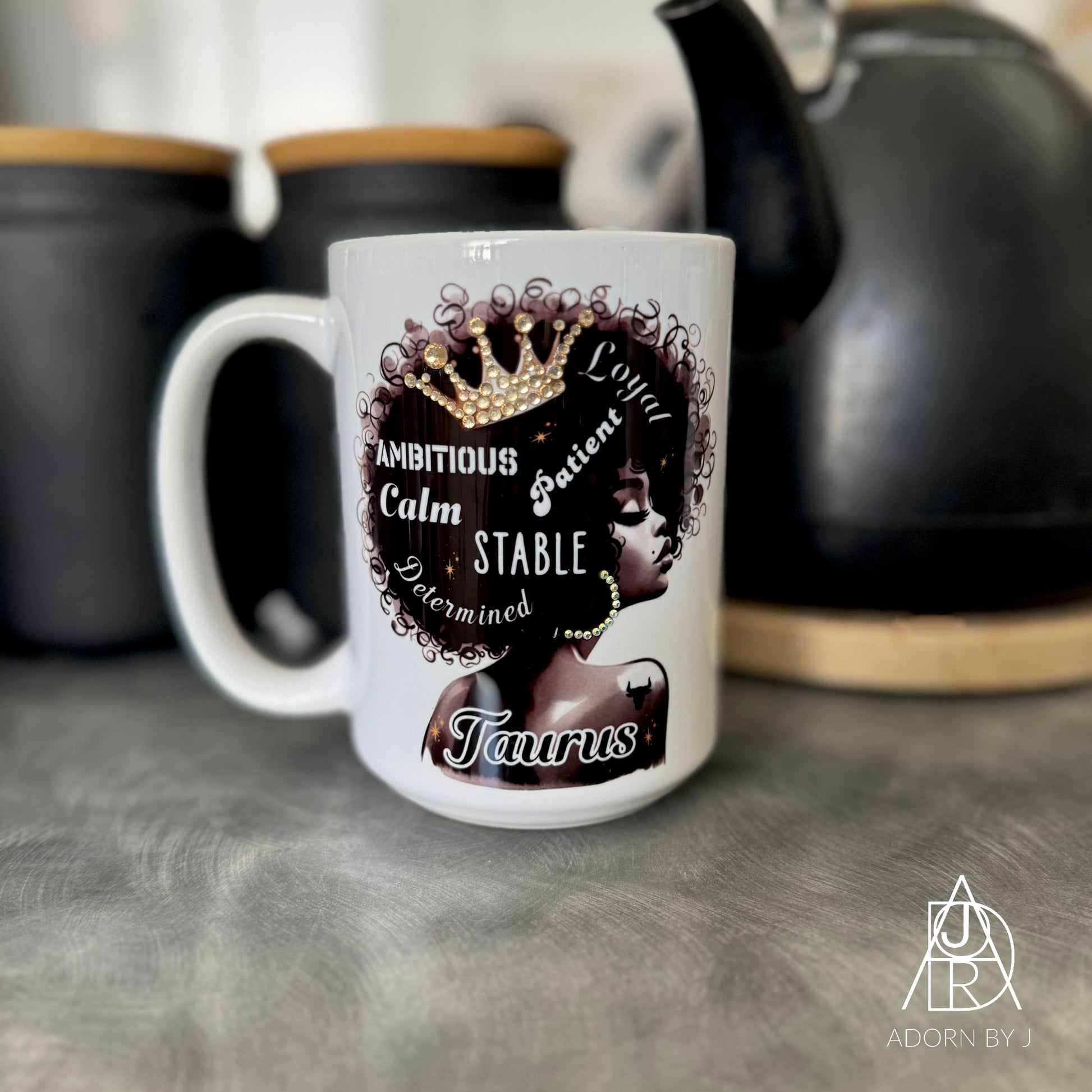 *All mugs are handmade, so no two will be exactly alike. The placement of rhinestones will be different, and the colour or style of flowers and accessories (if included) may also differ from mug to mug.
